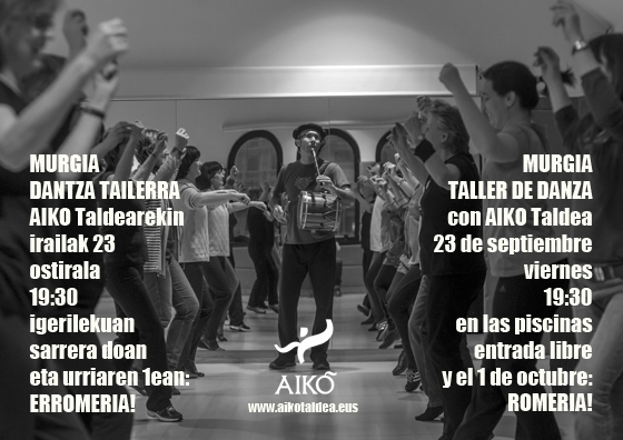 Zuiako haraneko herritarrok BIDABARRI dantza taldean elkartzen dira gure tradiziozko dantzak ikasi, jorratu eta batez ere elkarrekin ondo pasatzeko, eta oraingoan, MURGIAko jaietarako dantza tailerra antolatu dute datorren irailaren 23an, ostiralez, arratsaldeko 19:30tan, herriko igerilekuan. Helburua: arratsaldea dantza eginez ondo pasatu eta bide batez herritarrak dantzan egitera animatu, urriaren 1ean arrataldeko 20:00tan AIKO taldearekin izango den Dantzapoteo edo Erromeri mugikorrean parte hartuz.
